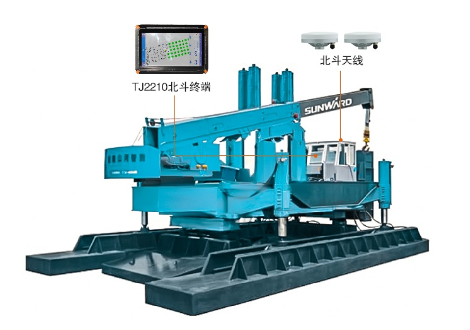 IPS-100静压桩施工引导系统是专为静压桩施工中测量放样工作量大,放样难度高而研发设计的施工引导系统,系统将北斗高精度定位定向一体化终端安装在打桩机上,将设计好的桩点坐标导入接收机,引导桩机将管桩精确的就位到点位上,是一款成本低,精度高,效率快,易操作的施工引导辅助系统。
