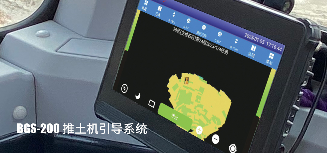推土机智能引导系统,采用北斗高精度定位技术,结合传感器装置,实时对铲刀位置姿态进行三维引导。系统应用三维数据文件作为施工基准,在无测量,放样的环境中快速、精确地实现设计要求,提高作业效率。