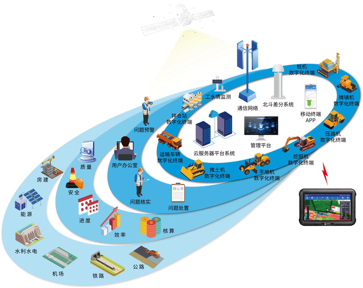 天玑科技引领基建行业数智化变革,依托北斗时空信息基准,创新性的将新一代信息化技术、智能装备技术、工程施工技术相融合,突破“工法”管理难题。通过持续、动态、高精度地追踪测读施工过程数据信息,并实时、准确、完整的展现至终端和管理平台,实现工程质量过程全方位的动态分析、预警与评价。已广泛应用于公路、铁路、水利、机场、能源、房建等工程建造领域。