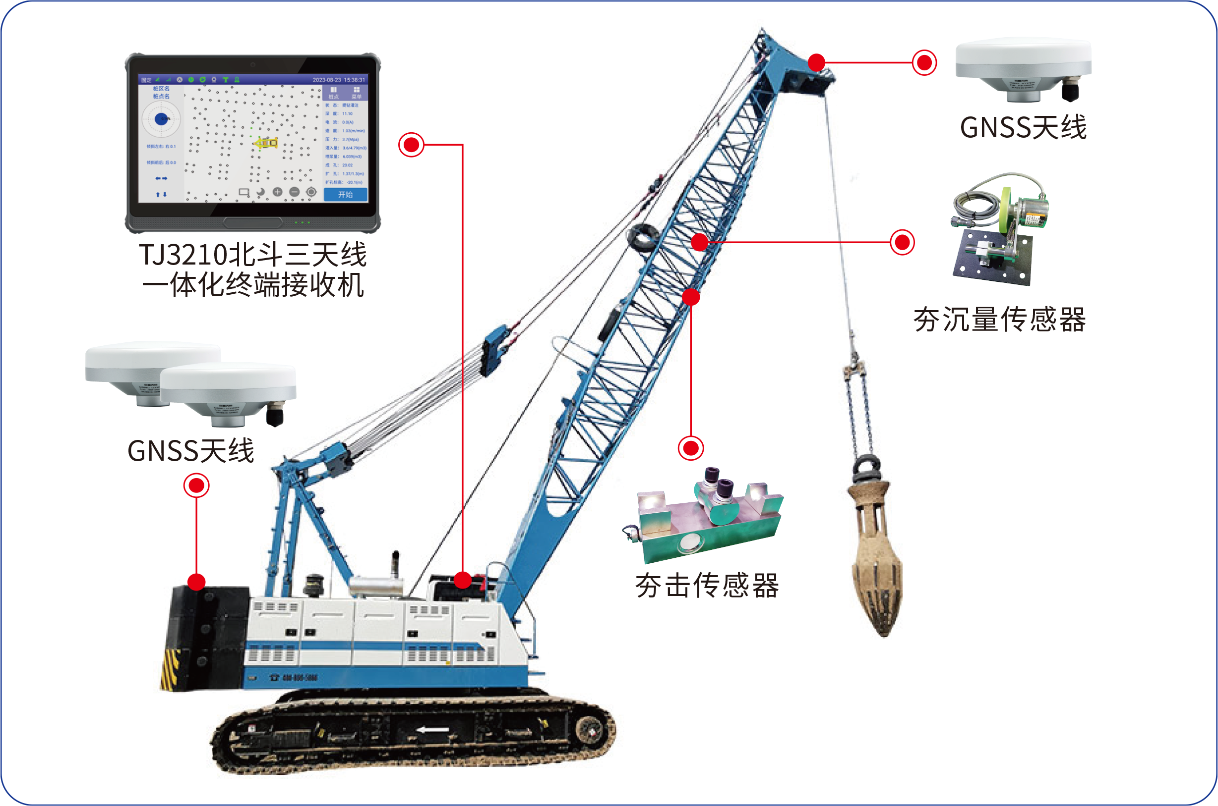 CFG/螺旋杆桩机施工信息化为总包单位带来的价值CFG/螺旋杆桩机施工信息化系统 IPS - 200A CFG/螺旋杆桩信息化系统,是一套集成北斗高精度三天线一体化终端(定位精度达厘米级)、高灵敏度电流传感器(采样频率10Hz)及双轴倾角传感器(测量范围±30°)等核心感知设备的智能化施工管理系统。该系统通过专用工装将传感设备刚